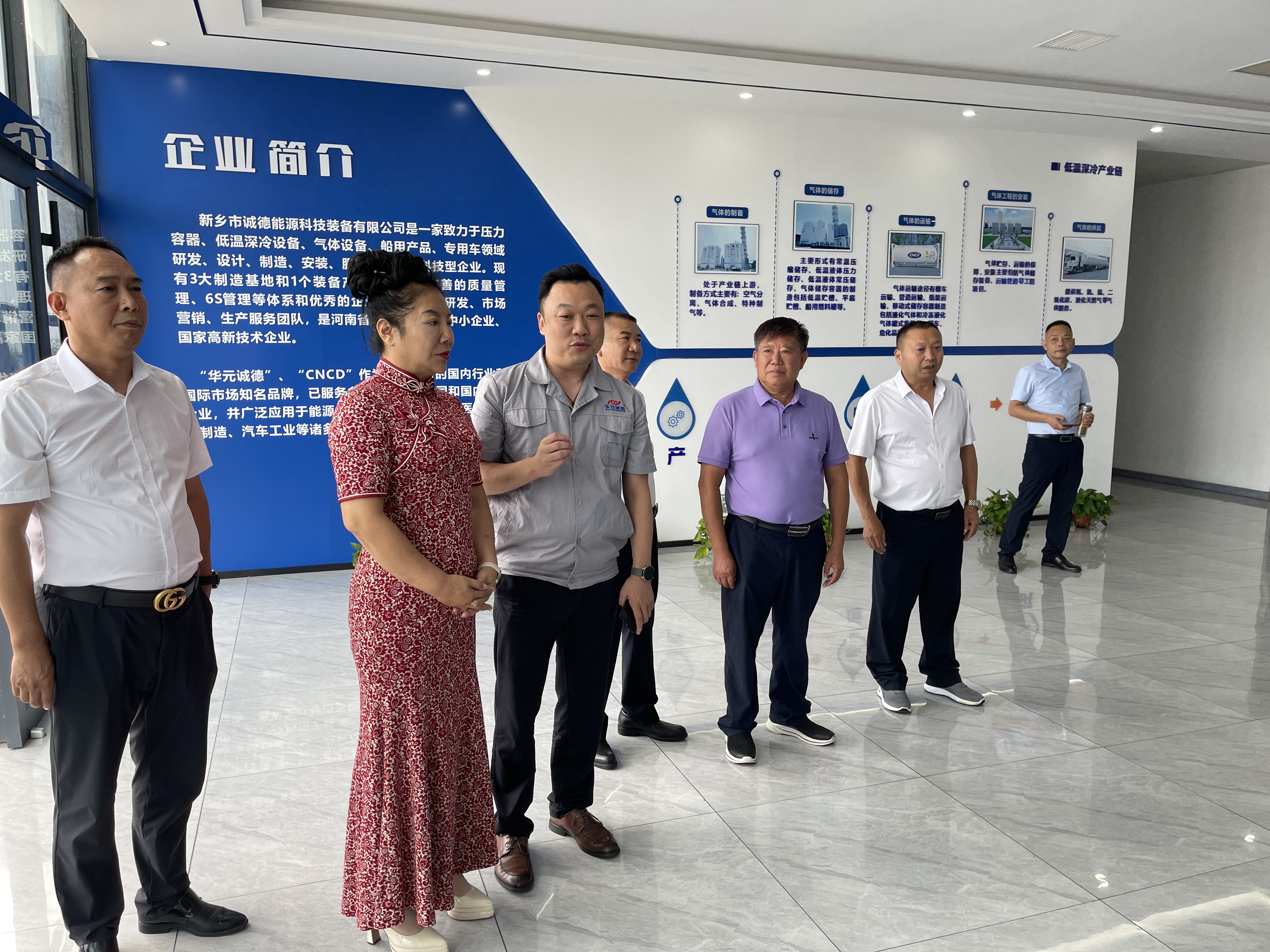 2025年7月21日下午,河南省BB贝博艾弗森官方网站会长薛荣带领执行会长陈海、常务副会长何勇、秘书处人员戚太明、付强、丁乐等走访商会常务副会长单位——新乡市诚德能源科技装备有限公司,受到公司总经理向文丽及公司团队的热情接待。