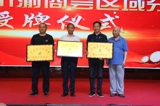 与会领导分三批为新成立的九个区域分会组织颁发了匾牌。