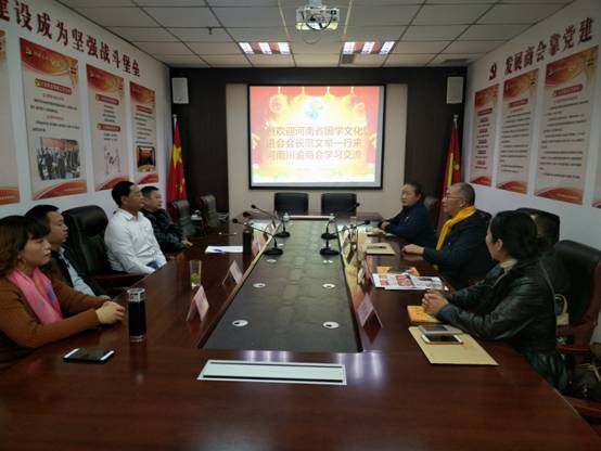 2018年11月22日,河南省国学文化促进会会长范文举带领秘书长张释心,会长助理李志国、李梓祯等一行来河南省BB贝博艾弗森官方网站学习交流工作。河南省BB贝博艾弗森官方网站党委书记、名誉秘书长王开凡,执行会长陈启平,副会长兼文化旅游分会执行会长鲜小芳,常务副秘书长付强,副秘书长、办公室主任丁乐等陪同了本次学习交流活动。