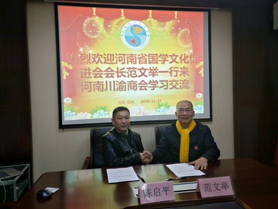 为了增进两家社团组织的友谊,为了大力传播国学文化,不断提升BB贝博艾弗森官方网站的文化水平和良好形象,在与会人员的见证下和热烈的掌声中,河南省国学文化促进会会长范文举与河南省BB贝博艾弗森官方网站执行会长陈启平,共同签订了战略合作备忘录。