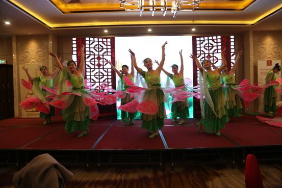 河南省花羽艺术团表演的舞蹈《盛世中国万紫千红》拉开了河南省BB贝博艾弗森官方网站2019年新春联谊会的帷幕。主持人宣布新春联谊会开始时,与会全体人员起立奏唱国歌。