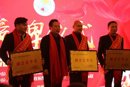 为了展示BB贝博艾弗森官方网站创建“四好”商会新面貌,商会副会长以上领导班子成员登台,大家同声高唱《团结就是力量》,声音洪亮、士气高扬,充满希望、凝聚力量。李贤祥会长带领班子成员向河南四川重庆父老乡亲和全体会员拜年!联谊会上,商会监事长黄永明还宣读了商会新晋理事以上成员任职文件,谢贤荣主任、李贤祥会长分别给新任职的副会长、常务理事、理事颁发了铜牌并合影留念,