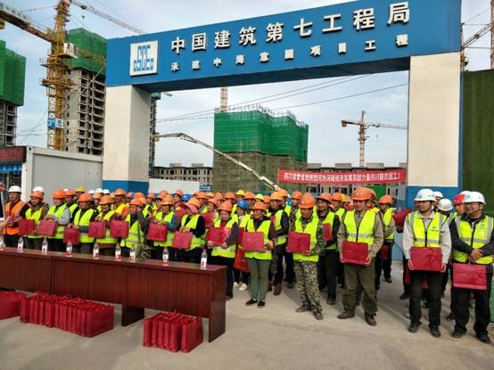 郑州宏光建筑劳务有限公司承建的中海意园工程项目工地,来自四川广元、南充、广安、乐山、资阳、达州等地近两万农民工挥汗如雨、贡献青春和力量。李贤祥会长一行来到工地,受到宏光公司员工的热烈欢迎。慰问活动由党委书记、名誉秘书长王开凡主持。张鹏经理、李贤祥会长、罗光强董事长先后讲话,赞扬川藉农民工发扬自强不息、勇于拼搏、不畏困苦、建功立业的精神,把大写人生书写在让中原更加出彩的大地上,激励大家不忘初心、凝聚力量、奋斗不止、争创佳绩,并给农民工们发送了慰问品,极大地鼓励了农民工高昂的士气、感恩党和政府的热情。