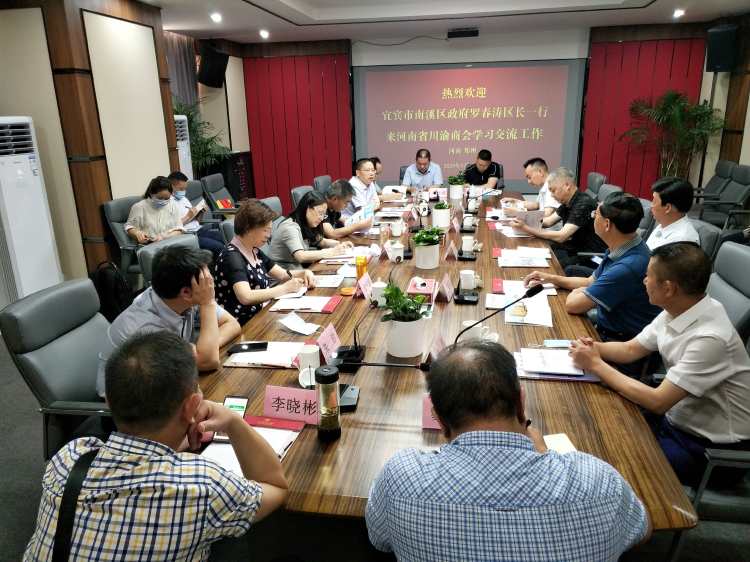 2020年5月27日至28日,四川省宜宾市南溪区委副书记、区长罗春涛率领区政协主席余水情,经开区党工委副书记、主任文卫,区委副书记朱砂,区政府副区长周隆渊,区政府办公室主任韩仕奎,区经济合作外事局长易强,区经济商业科技局长苏德强,区市场监督管理局长李晓彬等来河南省BB贝博艾弗森官方网站学习交流工作。河南省BB贝博艾弗森官方网站名誉会长陈泽民、薛荣和商会会长李贤祥,党委书记、名誉秘书长王开凡,党委副书记、监事长黄永明,常务副会长陈海、李可江、杨国鹏等陪同了学习交流考察活动。