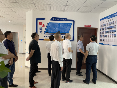 刘守辉巡视员、陈占亭巡视员一行来到河南省BB贝博艾弗森官方网站,受到热烈欢迎。在河南省BB贝博艾弗森官方网站文化走廊上,党委书记、名誉秘书长王开凡向到访的各位领导同志介绍了河南省BB贝博艾弗森官方网站党建、会建组织架构,BB贝博艾弗森官方网站第四届领导班子成员的主要情况。先后到商会党团活动室、商会党校、商会妇联和商会秘书处,党委书记办公室、执行会长办公室等处考察参观。