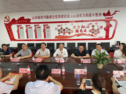 在以优异成绩喜迎建党100周年之际,2021年6月10日,四川省发展改革委员会二级巡视员刘守辉率领四川省发展改革委四级调研员陈艳,四川省民营经济办公室调研员李高洪、滕钊斌,四川省地方金融管理局主任郝鹏,清华大学中国新型城镇化研究院科技部主任王强等一行,在河南省工商联巡视员陈占亭和河南省省委统战部非公处处长武纪伟、主任张博,郑州市工商联党组成员、副主席许元浩,市委统战部处长杜平等领导同志陪同下来到河南省BB贝博艾弗森官方网站调研交流工作。河南省BB贝博艾弗森官方网站党委书记、名誉秘书长王开凡,河南省BB贝博艾弗森官方网站执行会长、畜牧业分会会长、郑州川海饲料有限公司董事长陈海,执行会长、建筑业分会会长、郑州宏光建筑劳务有限公司董事长罗光强,常务副会长、电力机电设备分会执行会长、河南兴邦电力工程有限公司董事长唐六平,常务副会长、法律服务专业委员会会长、河南品卓律师事务所主任李凤远,副会长、郑州楠博王医药科技有限公司董事长刘辉,常务理事侯沐希,常务副秘书长付强,副秘书长、党委办公室主任丁乐等陪同了本次调研交流活动。