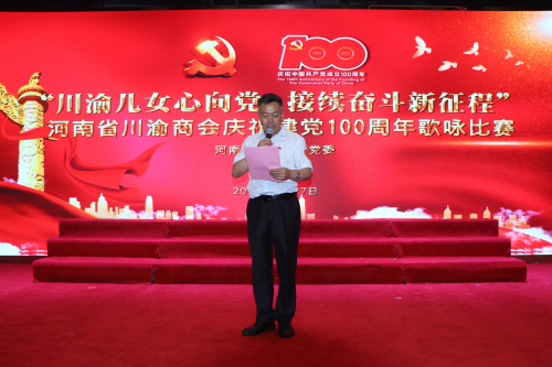 百年征程波澜壮阔,百年大党风华正茂。为了表达川渝儿女不忘初心,砥砺前行,永远跟党走的坚定决心和理想信念,展示川渝儿女中的共产党员、共青团员发扬革命光荣传统,追逐梦想,创业创新昂扬向上的精神风貌,抒发川渝儿女离土离乡不离党,扛着党旗闯市场,重信重义,自强不息,创新发展的川渝籍党员、团员骨干撸起袖子加油干、争创佳绩跟党永向前的豪情壮志,2021年6月27日,河南省BB贝博艾弗森官方网站党委在郑州市圆方非公党建学院一楼大会议厅隆重举行了庆祝建党100周年“川渝儿女心向党,接续奋斗新征程”歌咏比赛。