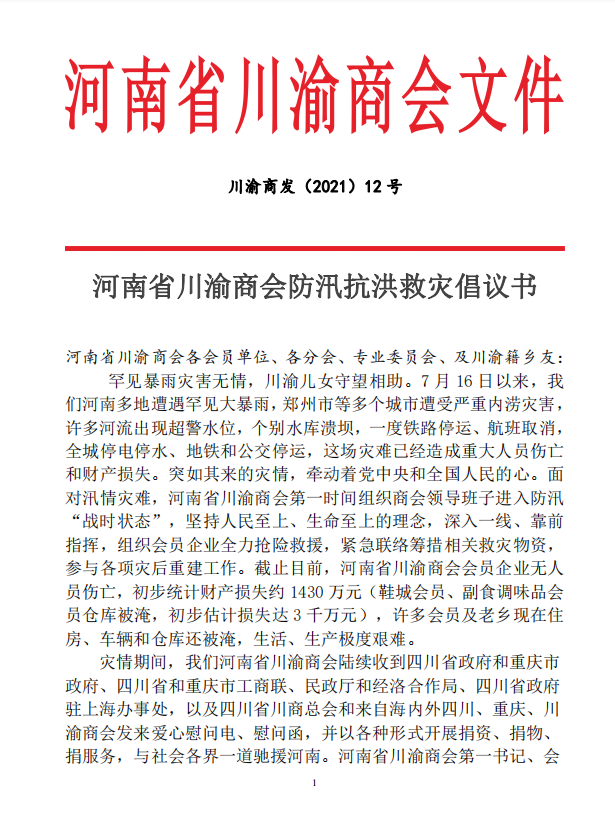 您所在的位置 首页 - 新闻中心 - 河南省BB贝博艾弗森官方网站防汛抗洪救灾倡议书