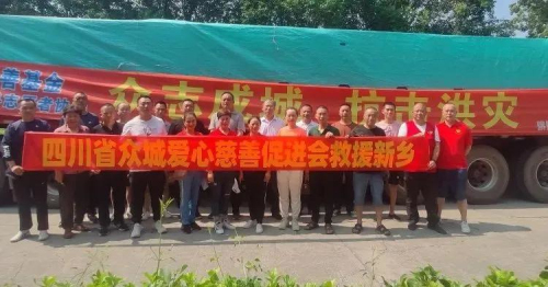 四川省众城爱心公益慈善促进会组织四川当地爱心企业驰援新乡,捐赠大批救灾物资。