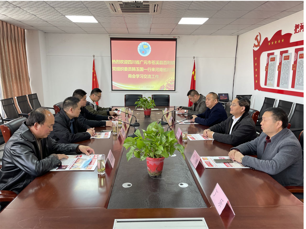 在党委书记王开凡主持的座谈会上,党委委员、执行会长罗光强致热情洋溢的欢迎词,接着大家饶有兴趣的观看了苍溪县形象宣传片和河南省BB贝博艾弗森官方网站专题宣传片,韩玉国委员开宗明义说明本次来河南省BB贝博艾弗森官方网站学习交流党建工作尤其是流动党员工作、推介苍溪县重点工程项目、打造百利新区招商引资引智的意愿。王开凡书记介绍了BB贝博艾弗森官方网站成立16年来创新发展取得的主要成绩和致力于“离土离乡不离党,高举党旗闯市场”党建工作品牌、川商返乡和渝商归渝回馈桑梓等方面的主要情况,表示大力支持四川、重庆老家有关党委政府来豫招商引资,提供服务,资源整合,为助推经济发展贡献力量。韩玉国委员一行热情称赞BB贝博艾弗森官方网站建设发展和引领企业家返乡投资创新发展取得的优异成绩,表示要党建引领、加强联系、畅通信息、到实地求实效,搭建新平台,开启新征程。