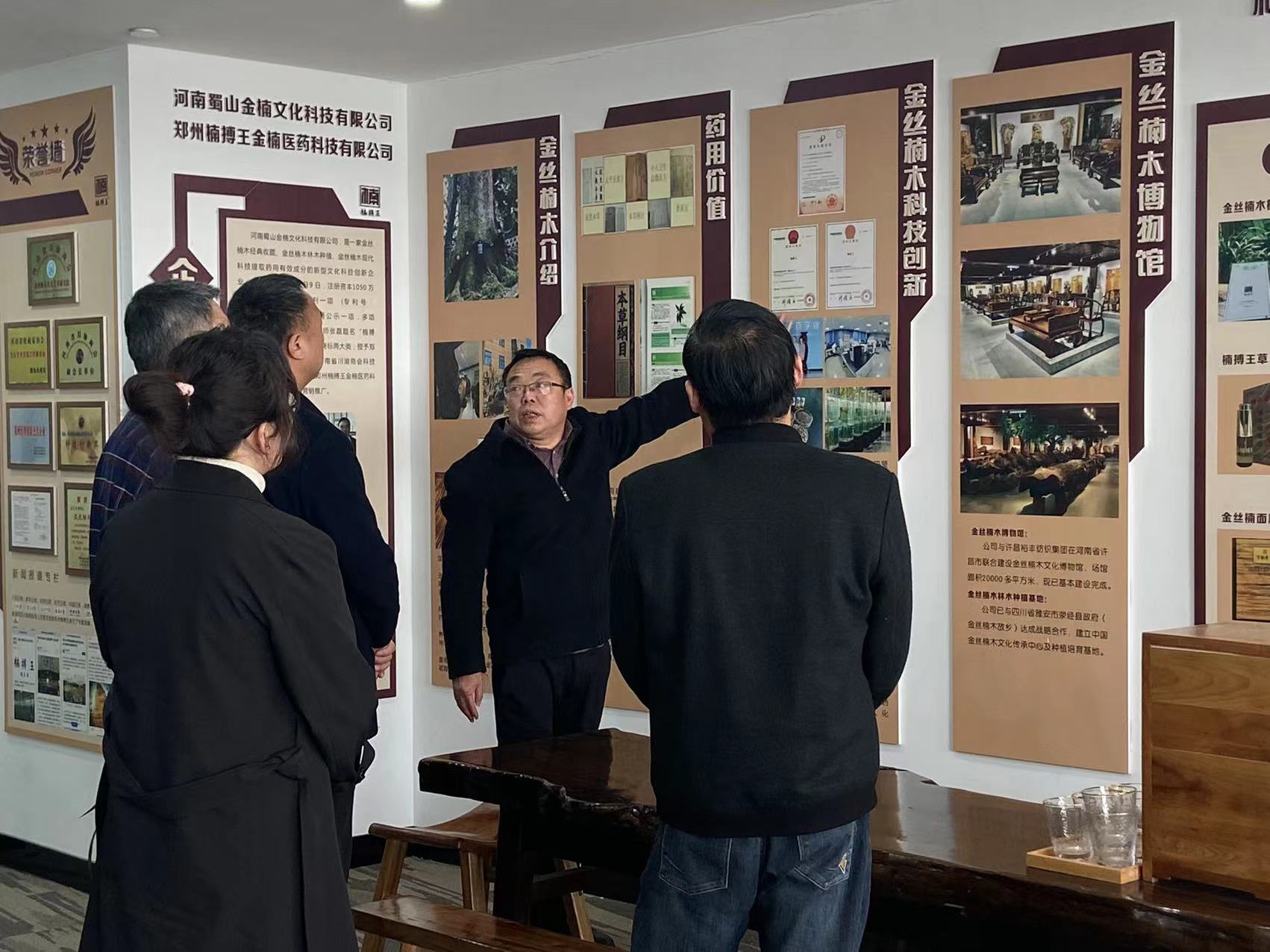 在郑州市郑东新区龙子湖智慧岛、副会长刘辉创办的企业一一郑州楠博王医药科技有限公司,刘辉带领团队敞开胸怀喜迎家乡优秀代表来公司检查指导工作,介绍了公司科研投入、健康主导、多向发力、质量提升、奉献社会的胆识和情怀,公司与郑州大学药学院共同研发的具有广谱抗菌、康养一体的“楠博王”医药新品,以及广阔的市场发展前景,大家分享了刘辉副会长创新发展成果。
