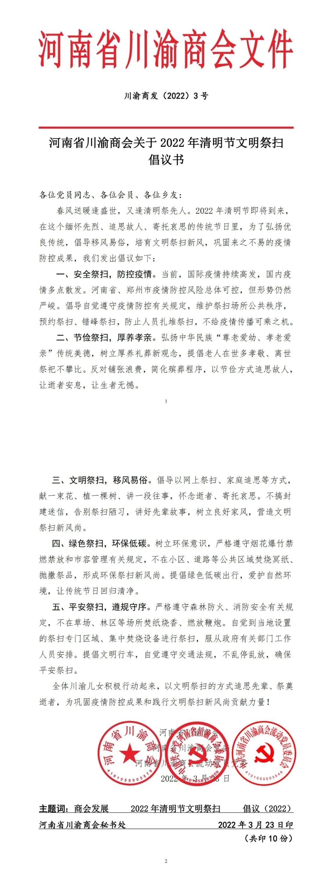 您所在的位置 首页 - 新闻中心 - 河南省BB贝博艾弗森官方网站关于2022年清明节文明祭扫倡议书