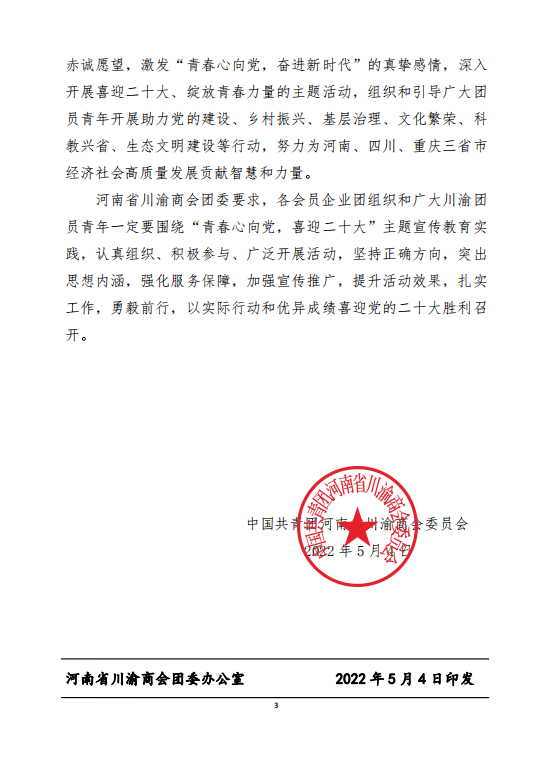 河南省BB贝博艾弗森官方网站团委“青春心向党,喜迎二十大”主题宣传教育实践活动启动仪式,在全体与会人员挥舞团旗,齐声高唱中国共青团团歌声中结束。