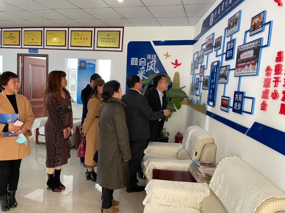 当天下午,陈小东部长一行来到河南省BB贝博艾弗森官方网站,受到热烈欢迎。在党委书记、名誉秘书长王开凡和商会领导成员的陪同下,陈小东部长一行参观了BB贝博艾弗森官方网站办公场所,观看了BB贝博艾弗森官方网站文化墙、第四届领导班子成员形象展示,参观了商会党团活动室、妇联活动室、党委工作室、党校和秘书处等场所。