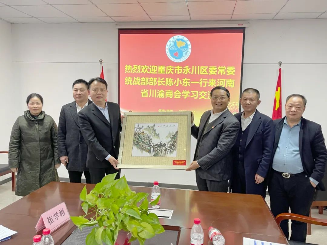 2023年2月27日至3月1日,重庆市永川区委常委、区委统战部部长陈小东率领重庆市永川区委统战部一级调研员陈治明,永川区胜利路街道办事处党工委书记王成虎,永川区工商联副主席、秘书长龙贤,永川区生态环境局副局长杨璐萤,永川区胜利路街道办事处副主任喻身兵,永川区招商局驻浙闽赣分局局长崔学彬,永川区应急管理局工贸科一级主办、工程师邓月雄,永川区经济信息规划投资科科长周建平,永川区招商局驻浙闽赣分局副局长陈鹏飞,永川区工商联经济部部长章伶俐,永川区民营经济促进中心主任黎方等一行,带着重庆老家父老乡亲的深情厚意,专程来到中原河南,亲切看望慰问在中原大地创业创新发展的重庆永川籍经商务工人士。党的二十大代表,河南省BB贝博艾弗森官方网站党委第一书记、会长薛荣,BB贝博艾弗森官方网站党委书记、名誉秘书长王开凡,党委委员、执行会长罗光强,执行会长陈海,常务副会长、济源市BB贝博艾弗森官方网站会长刘稀林,妇联主席、常务副会长何媛,妇联副主席、副会长田春,副会长陈建清、鲜小芳、杨富友,常务理事何勇,BB贝博艾弗森官方网站常务副秘书长付强,副秘书长、党委办公室主任丁乐和新乡市BB贝博艾弗森官方网站会长向文丽、书记李永忠、秘书长卢兰平等参加了本次活动。中国国际新闻社有限公司董事长向瑞成等应邀陪同了本次活动。