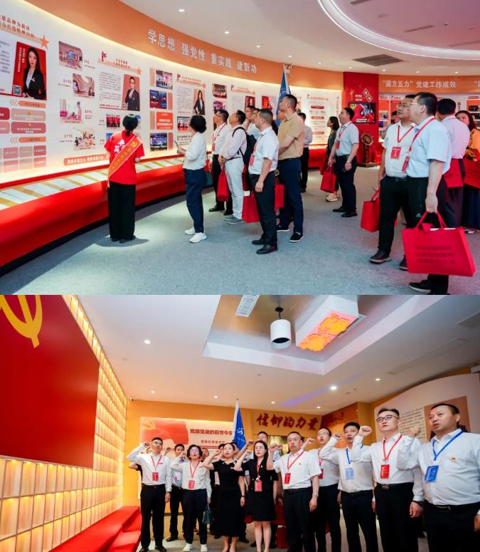 大家走进圆方集团党建馆,认真阅读习近平总书记给圆方集团全体职工的回信,了解圆方劳动职工克服艰难险阻,在平凡岗位上续写不平凡的故事,学习圆方集团特色党建工作方法,进一步加深了商协会坚持党建引领、企业开展党建工作的理解。参会的全体党员在庄严的党旗前重温入党誓词,激发党建引领的责任感荣誉感和自豪感。